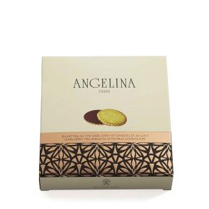 Chocolate negro 45% (massa de cacau, açúcar, manteiga de cacau, emulsificante: lecitina de SOJA, aroma natural a baunilha), açúcar, lascas de AMÊNDOAS, creme azedo (LEITE), xarope de glicose, AMÊNDOA em pó, manteiga salgada (LEITE), mel, frutas cristalizadas, farinha de TRIGO (GLÚTEN), casca de laranja 1,2%. Chocolate negro: cacau 70% mínimo. Pode conter vestígios de: soja, leite, amêndoas, glúten