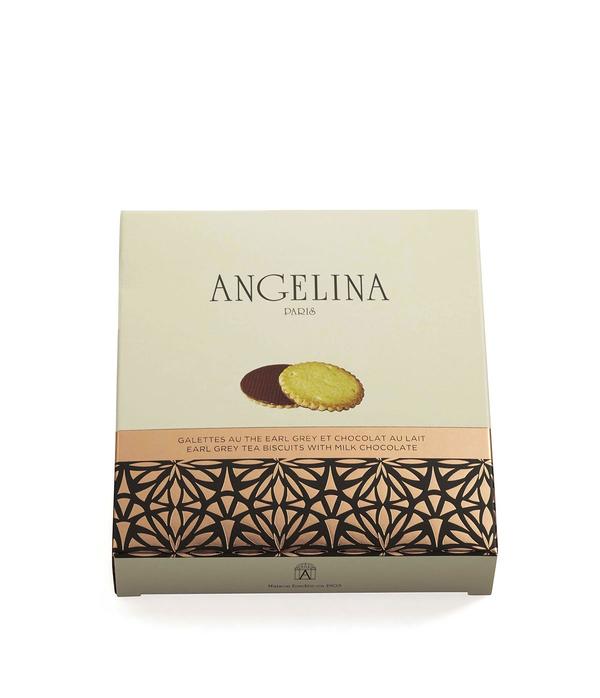 Farinha de TRIGO (GLÚTEN), chocolate ao LEITE 25% (açúcar, manteiga de cacau, LEITE em pó integral, pasta de cacau, emulsificante: lecitina de SOJA, aroma natural de baunilha), açúcar, manteiga de batedeira (LEITE) , OVOS frescos inteiros, infusão do chá earl grey 0,8% (água, mistura de chás, casca de laranja, aroma de bergamota), LEITE em pó desnatado, sal de Guérande, fermento em pó (difosfato dissódico, hidrogenocarbonato de sódio), óleo essencial de bergamota. Pode conter vestígios de: nozes e amendoins